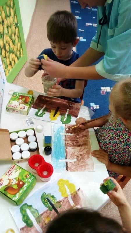 Много событий и интересных затей были у нас с детьми на этой неделе. Наблюдая за погодой осени мы нарисовали осенний пейзаж , создание которого проходило в три этапа . На первом этапе дети нарисовали фон данной картины , научились и вспомнили как смешивать краску и какой цвет получиться в результате . На втором этапе обучались распределению элементов на картине , что у них довольно хорошо получилось . И на третьем , заключительном этапе мы совместно с детьми дорисовывали мелкие элементы для полной картины. С младшими детками мы конструировали замок, при этом изучая из каких частей он состоит и какие геометрические фигуры используются для постройки данного объекта. Также мы с детьми готовимся к празднику осени , разучиваем песни , стихи , ставим танец и сценку .