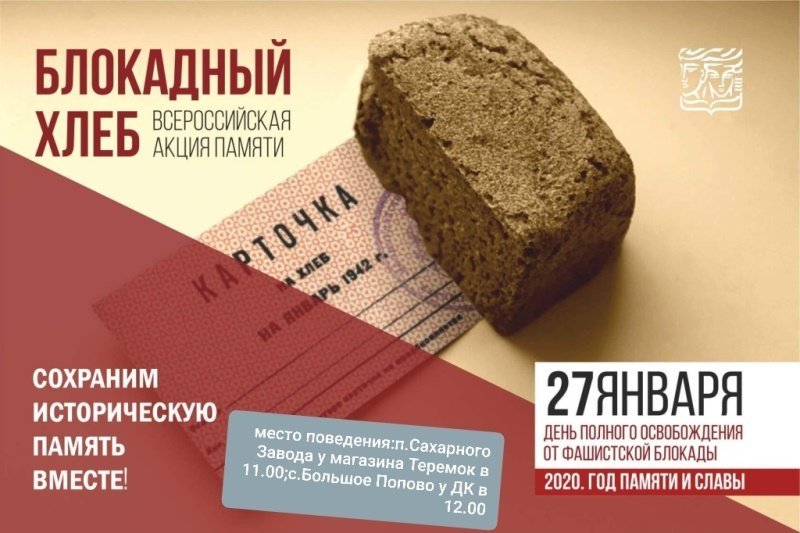 Сохраним историческую память вместе!! В рамках памяти о погибших в блокаде Ленинграда в детском саду с. Большое Попово проводилась всероссийская акция "Блокадный хлеб" . Родителям ,воспитанникам и сотрудникам детского сада раздавали хлеб в память о том,что люди в блокаде голодали.